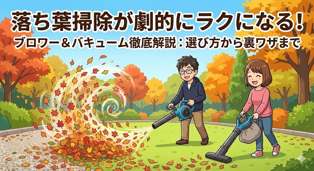 最初は「吹き飛ばすだけで十分」と感じるかもしれませんが、大量の落ち葉と格闘するシーズンになると、やはり「吸って小さくしてくれる機能」のありがたみが身に沁みます。予算と保管場所が許すなら、両方の機能が使える「ブロワバキューム」タイプを選んでおくと、後々の満足度は高いかなと思います。