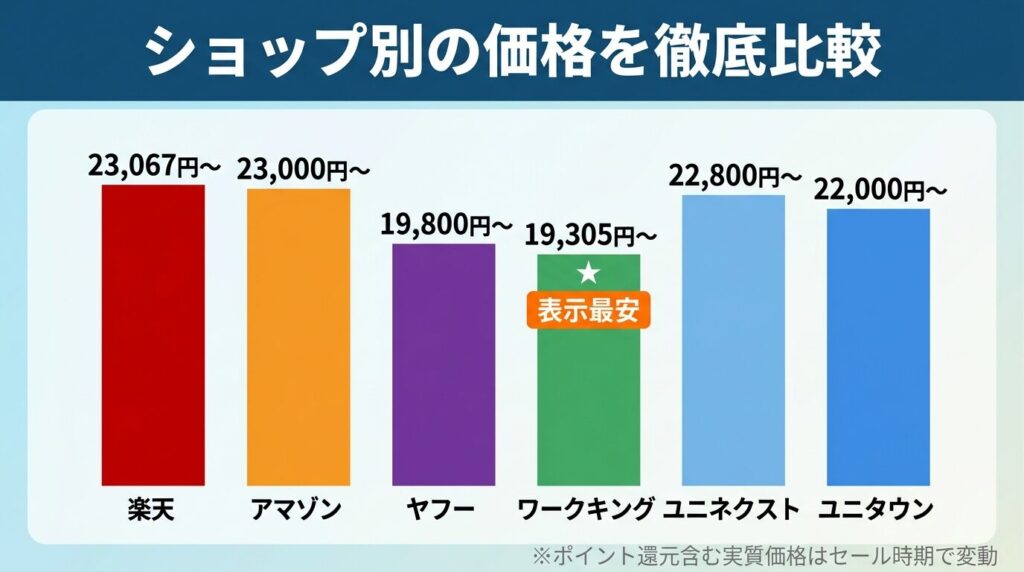 時期・在庫状況・ポイント還元率によって変動しますので、最新の価格は必ず各ショップでご確認ください。
