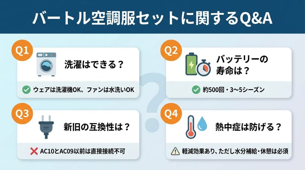バートル空調服セットの購入を検討している方からよく寄せられる質問とその回答をまとめました。