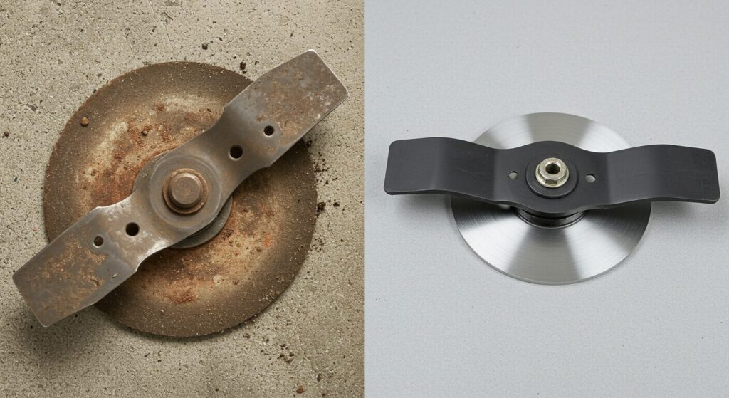 芝刈り機のパフォーマンスを左右する最も重要な部品、それは間違いなく「刃」です。切れ味の落ちた刃は、芝生をスパッと綺麗に「カット」するのではなく、力まかせに「引きちぎる」状態になります。これにより、芝の切り口が茶色く枯れ込み、見た目が悪くなるだけでなく、モーターに不必要な負荷をかけ続け、頻繁な停止や内部での詰まりを引き起こす直接的な原因となるため、刃のコンディションを常に良好に保つことは非常に重要です。