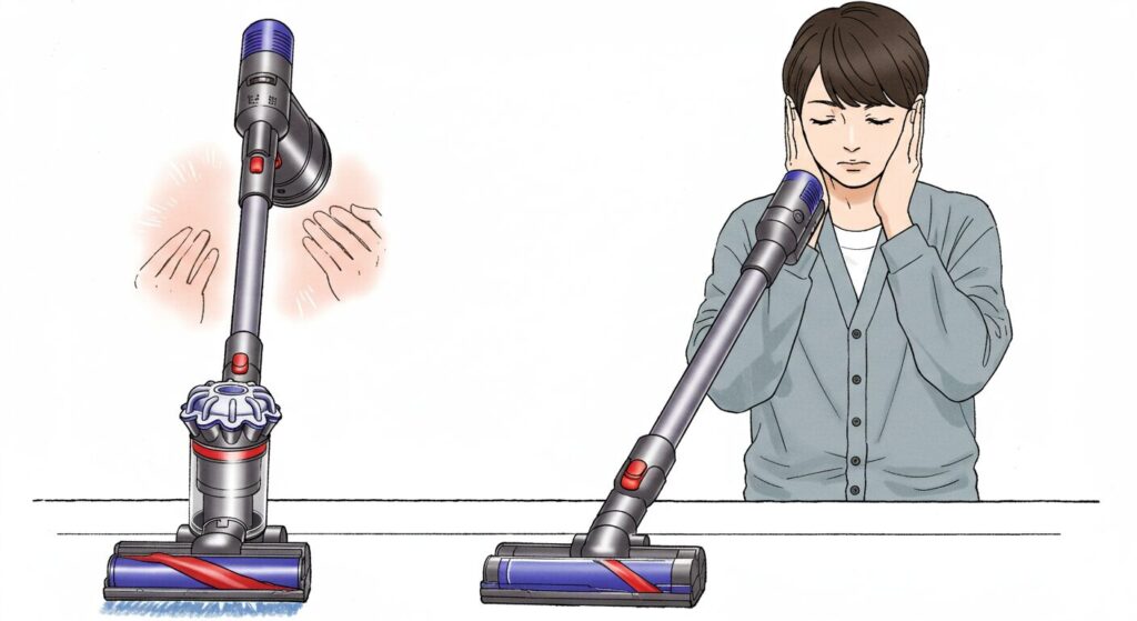 「吸引力は文句なしだけど、正直なところ掃除が終わると腕が疲れる…」と感じたことはありませんか?実は、それこそがダイソンの「パワー最優先」という設計思想からくる、ある種のトレードオフ(二律背反)なんです。