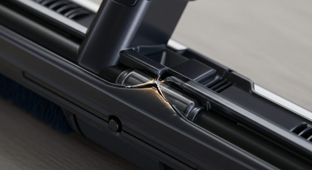 その故障報告が最も集中している箇所が、掃除機の性能を左右する重要なパーツであるヘッド部分です。具体的には、「走行を支える小さな車輪が破損した」「モーターは動いているのに回転ブラシが回らなくなった」「パイプとの接続部分であるプラスチックに亀裂が入った」といった物理的な破損に関する報告が後を絶ちません。