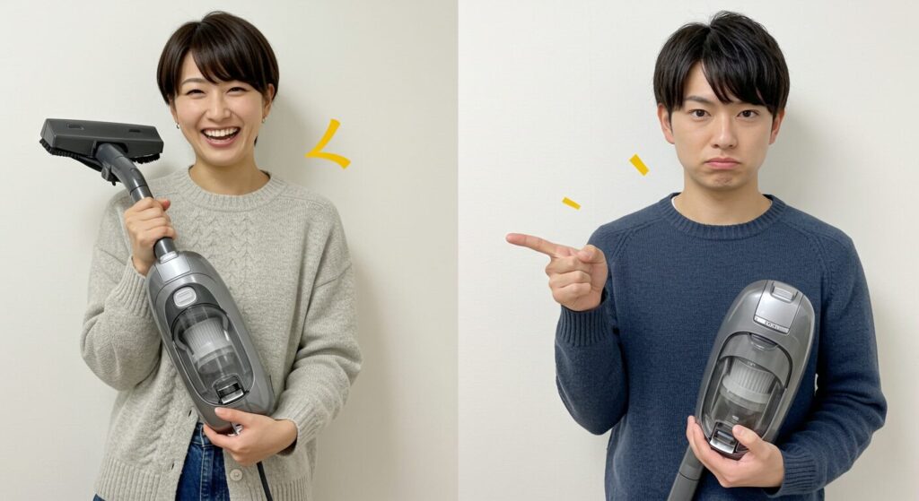 - 人間工学を無視した掃除機:本体が重すぎる、全体のバランスが悪い、グリップが手に馴染まないなど、身体的な負担を強いる製品は、日々の掃除を楽しい時間から苦痛な労働に変えてしまいます。