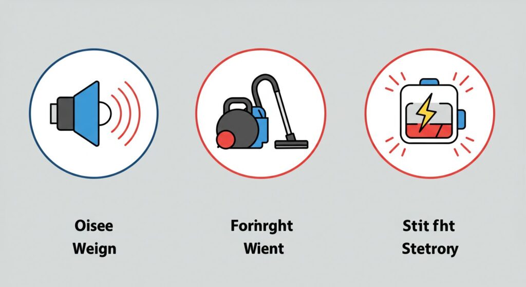 シャークの掃除機を長く愛用するために、購入前に必ず理解しておくべき明確な欠点は、主に「運転音」「重量」「バッテリー駆動時間」という、製品の基本的な快適性に関わる3つの要素に集約されます。
