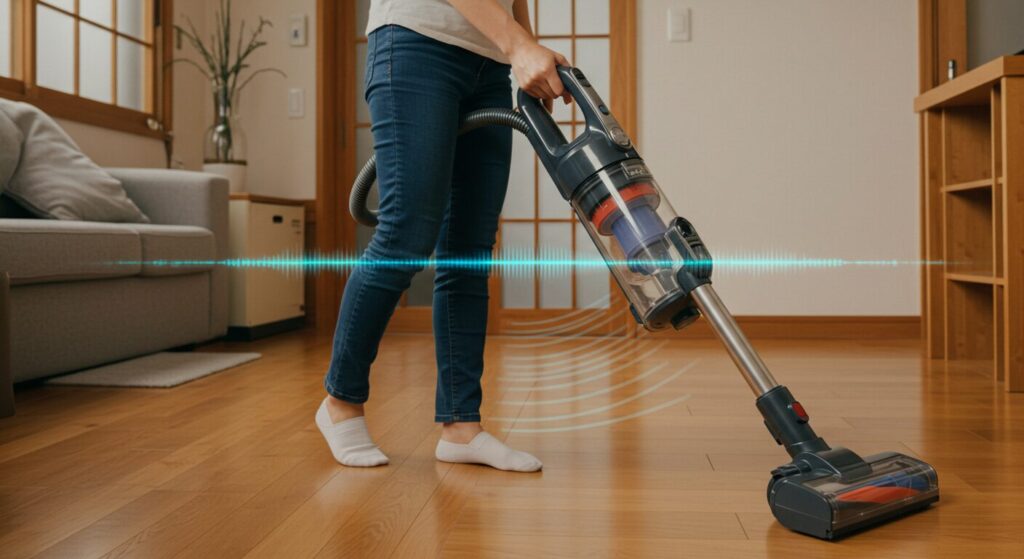 フローリングなどの硬い床を掃除する際に、ヘッドの小さな車輪から発せられる甲高い「キュルキュル」という軋み音や「カラカラ」というプラスチック音が気になるという声も多く、モーターの持続音以外の部分が使用体験の質を下げてしまう場合があります。