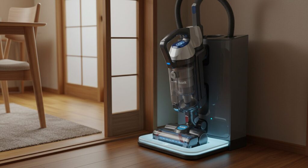 シャークの掃除機の人気とブランドイメージを決定づけている最大のイノベーションが「自動ゴミ収集ドック」です。