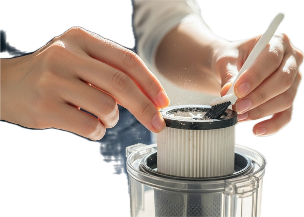 - 水洗いと乾燥: フィルターとダストカップは水洗いが可能です。洗浄後は、風通しの良い場所で完全に(24時間以上)乾燥させる必要があります。