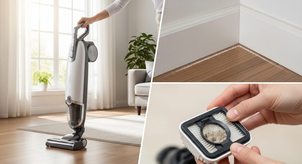 - メンテナンスの煩雑さ: フィルターが目詰まりしやすく、吸引力を維持するためには頻繁で手間のかかる手入れが必須です。