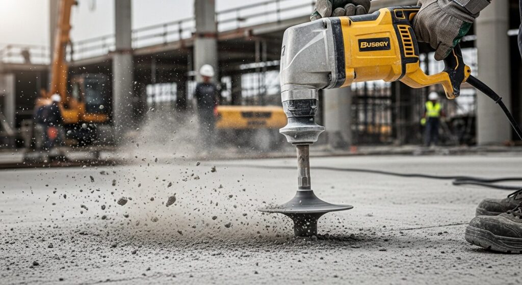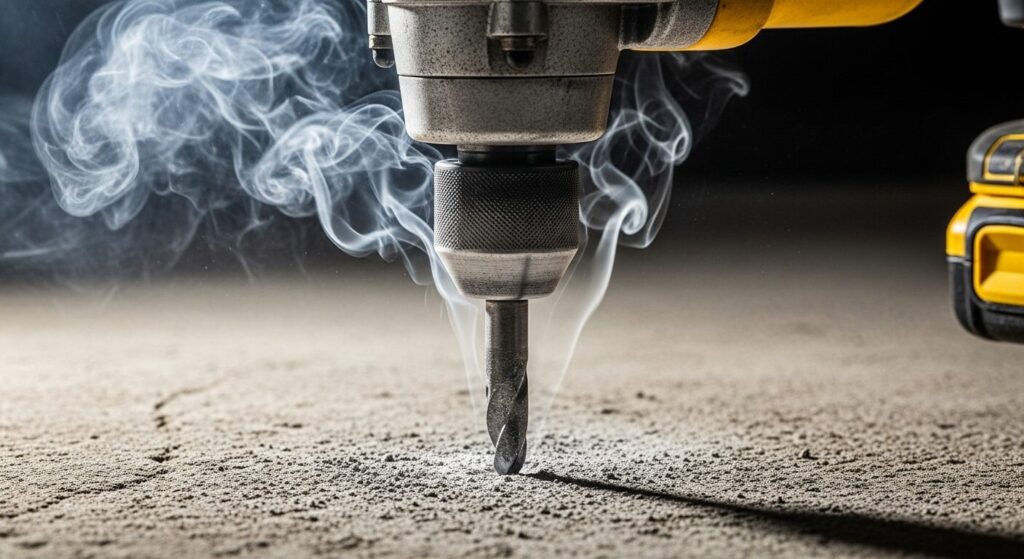 コンクリート穴あけは、「叩いて砕く(打撃)」と「削って掻き出す(回転)」の合わせ技で進んでいきます。