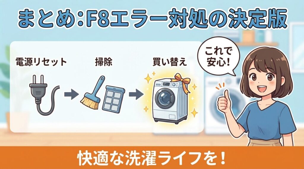 まとめ:ハイアール洗濯機F8エラーの直し方と最終手段