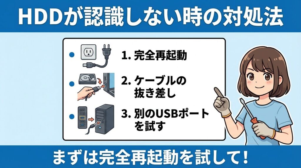 「急に録画できなくなった」「HDDを認識しなくなった」というトラブルは意外と多いものです。修理を依頼する前に、以下のポイントをチェックしてみてください。多くの場合、故障ではなく設定や接続の問題です。