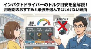 ただし、構造が複雑になるため価格が高く、瞬間的な最大トルクは金属打撃式に比べて控えめになる傾向があります。それでも、リフォーム現場や賃貸DIYにおいて、この静音性は代えがたいメリットとなります。