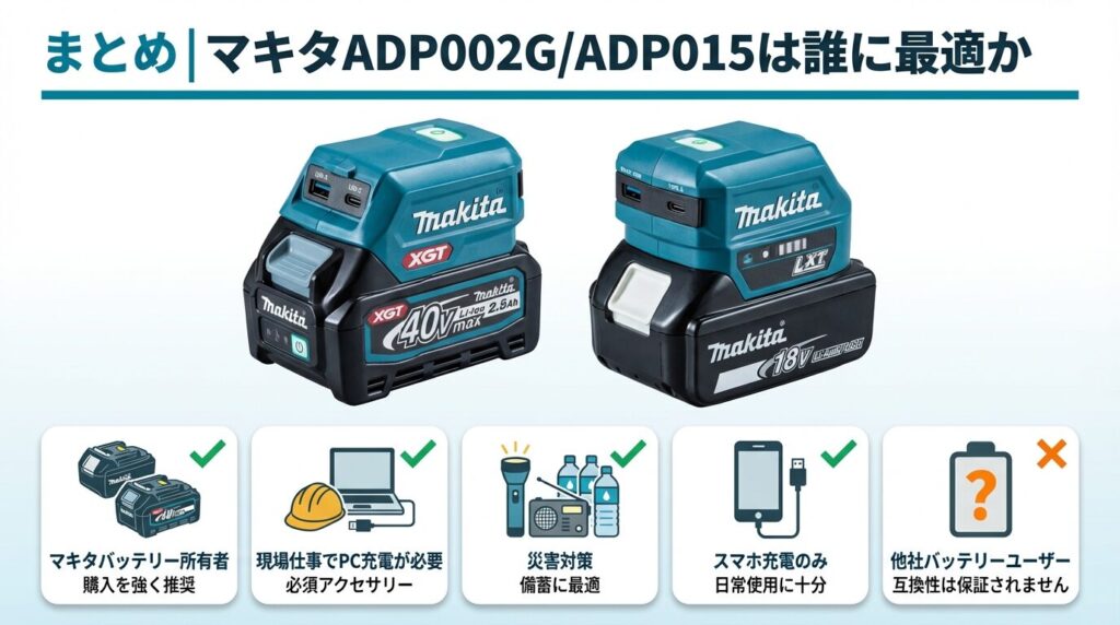 まとめ|マキタADP002G/ADP15は誰に最適か