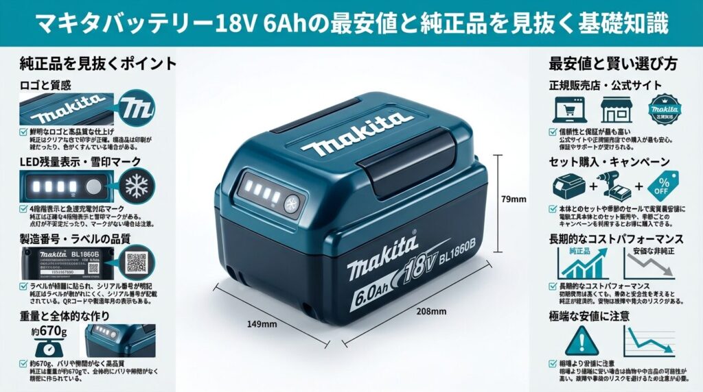 マキタバッテリー18V 6Ahの最安値と純正品を見抜く基礎知識
