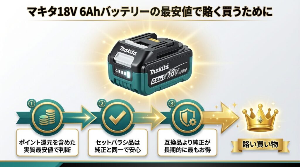 まとめ|マキタ18V 6Ahバッテリーを最安値で失敗なく買うコツ
