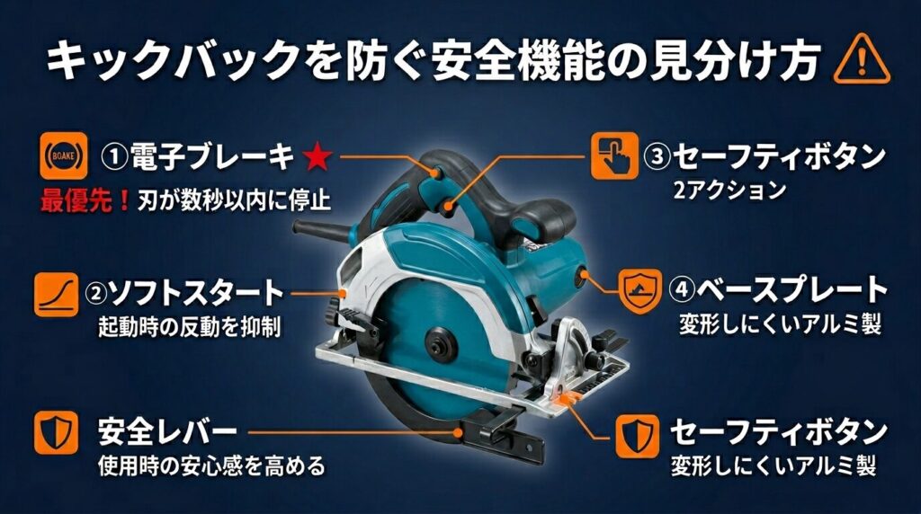 キックバックを防ぐ安全機能の見分け方