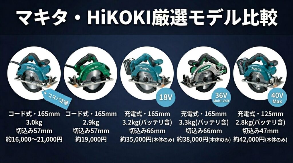 • マキタ・HiKOKI厳選モデルのスペック比較と実勢価格