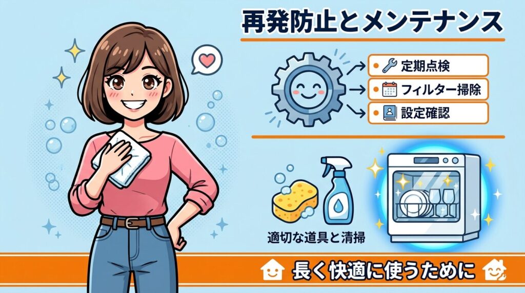 ここでは、再発防止のための設定変更や、食洗機を長く快適に使うためのコツをご紹介します。