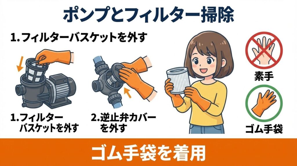 排水ポンプとフィルターの正しい掃除手順
