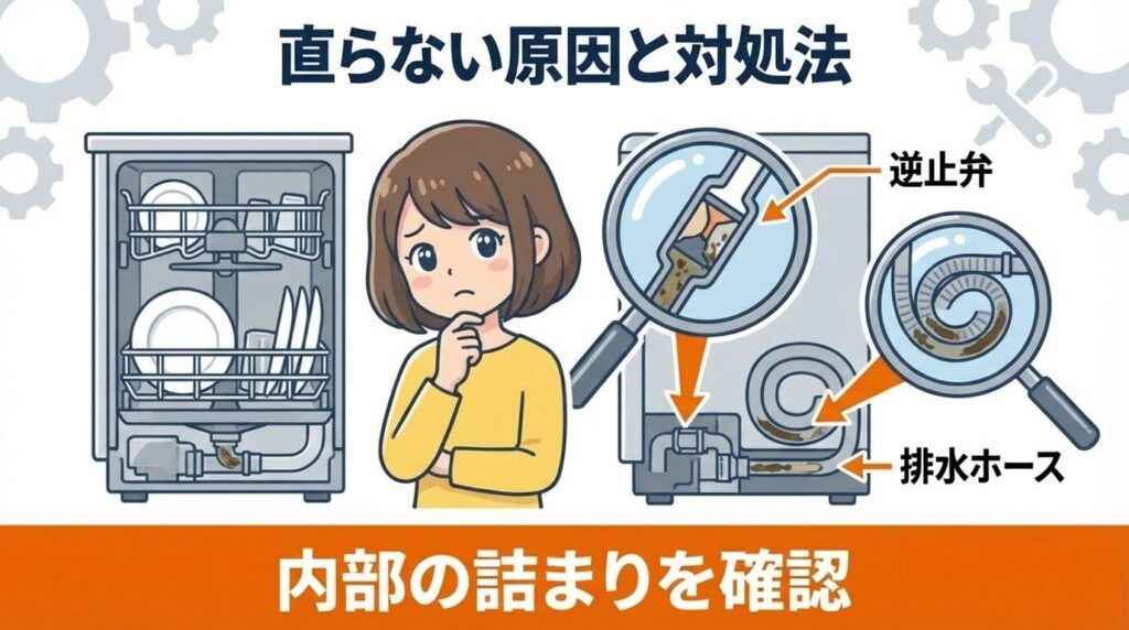 ここまでの手順で物理的に水を抜き、フィルター掃除もして、ポンプの異物も確認した。それなのに、再起動してもやっぱり水が抜けない。そんな場合は、もう少し深い部分、目に見えない部分に原因があるかもしれません。ここでは、見落としがちな「逆止弁のボール固着」や「排水ホースの設置問題」、そして最終的な修理依頼の判断基準について解説します。