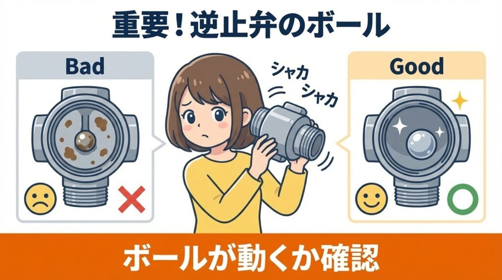最重要チェック箇所!逆止弁とボールの固着