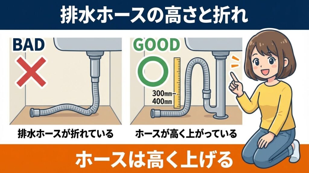 意外な落とし穴?排水ホースの高さと折れ