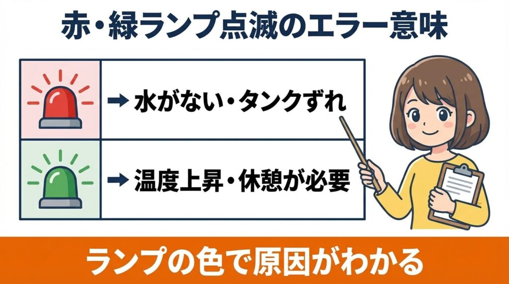 この中で特に相談が多いのが、「水は満タンに入っているのに、赤ランプが点滅して『水がない』と判断されてしまう」ケースです。