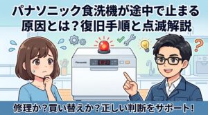 パナソニック食洗機が警告音で停止した時の対処法と修理・買替判断