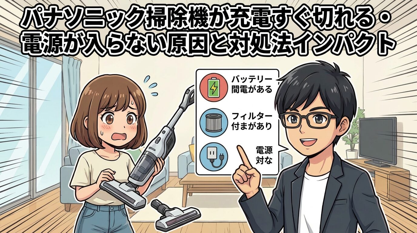 毎日のお掃除に欠かせない相棒、パナソニックの掃除機。いざリビングを掃除しようとスイッチを入れたら「…シーン」と電源が入らない、あるいは「充電したはずなのに、たった数分でウィーンと止まってしまう」。そんな経験、ありませんか?