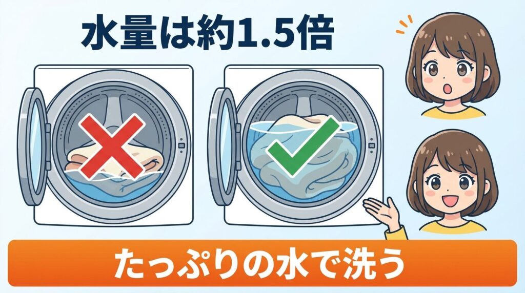 | 使用水量 | 衣類の量に合わせた最適量 | 標準比 約1.5倍以上のたっぷり水 |