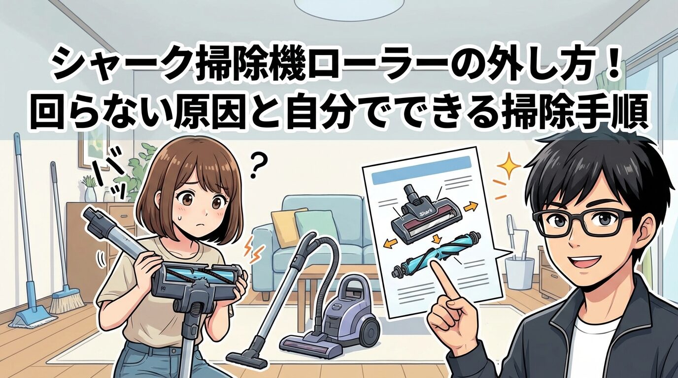 今回は、シャーク掃除機のローラーが回らなくなった時の原因と、誰でもできる外し方・メンテナンス方法について解説しました。