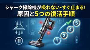 Shark(シャーク)の公式情報や検証データによると、わずか長さ45cm程度の髪の毛や、0.25g程度のゴミが絡まるだけでも、この敏感なセンサーが反応する可能性があるそうです。つまり、ペットを飼っているご家庭や、髪の毛が長い方がいるご家庭では頻繁に起こりうる現象といえます。故障ではないので、焦らず対処すれば必ず直ります。